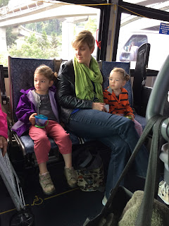 Since the girls' favorite song recently has been "Wheels on the bus", we took the kids to the library via bus. Uncle Alex went along, for which we were most grateful at the end!